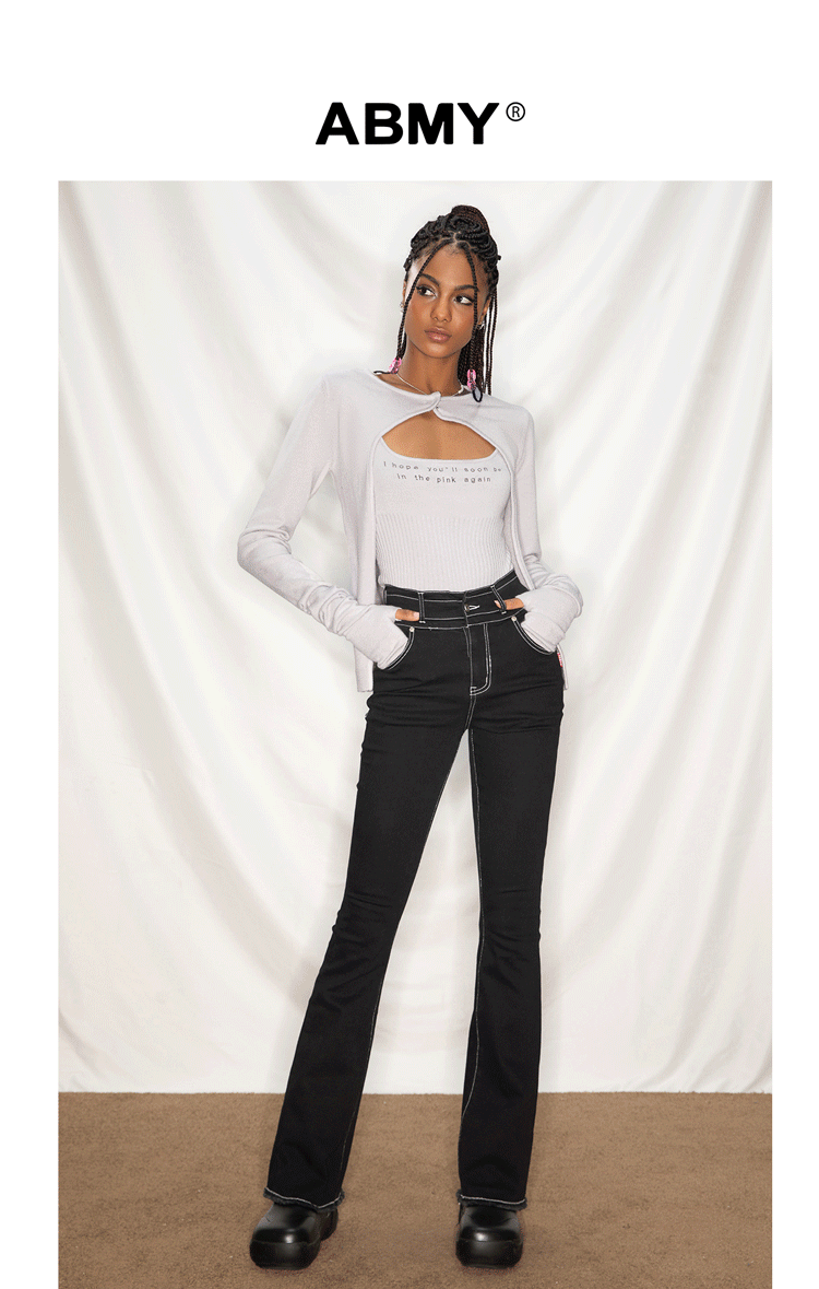 ABMY Super High Waist Spice Girl Versatile Slim Flared Jeans